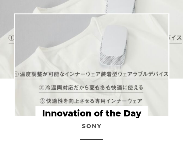 In July, Sony launched a successful crowdfunding campaign in Japan for a wearable cooling device called the Reon Pocket. The product sits at the back of the neck in a specially designed undershirt and delivers instant cooling thanks to the Peltier effect, a property of semiconductors. The project is part of the Sony Startup Accelerator and due to hit the market in 2020, with the device and shirt starting at USD 130, just in time for the Tokyo Olympics.